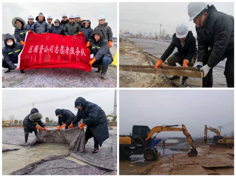 2月2日,農(nóng)歷大年初二,雨雪交加。區(qū)國(guó)資集團(tuán)黨員突擊隊(duì)、志愿者服務(wù)隊(duì)前往疫情防控隔離點(diǎn)協(xié)助搬運(yùn)材料、清理廢渣、鋪設(shè)防凍布等,項(xiàng)目現(xiàn)場(chǎng)一派繁忙景象。下午項(xiàng)目建設(shè)組開(kāi)始布置班組,明日正式開(kāi)始準(zhǔn)備區(qū)折疊房吊裝施工,確保春節(jié)期間施工組織有條不紊,有序推進(jìn)。