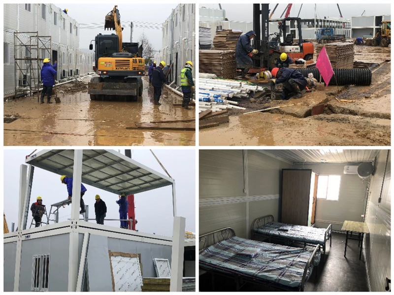 截至2月11日,隔離點項目準備區(qū)折疊房安裝完成,折疊房室內(nèi)家具、空調(diào)、熱水器、淋浴房、水電正在有序安裝中;隔離區(qū)板房室外電力電纜井砌筑、緩沖區(qū)板房已安裝完成;污水處理設備正在安裝中,室外走道支模和路燈線路在準備中。